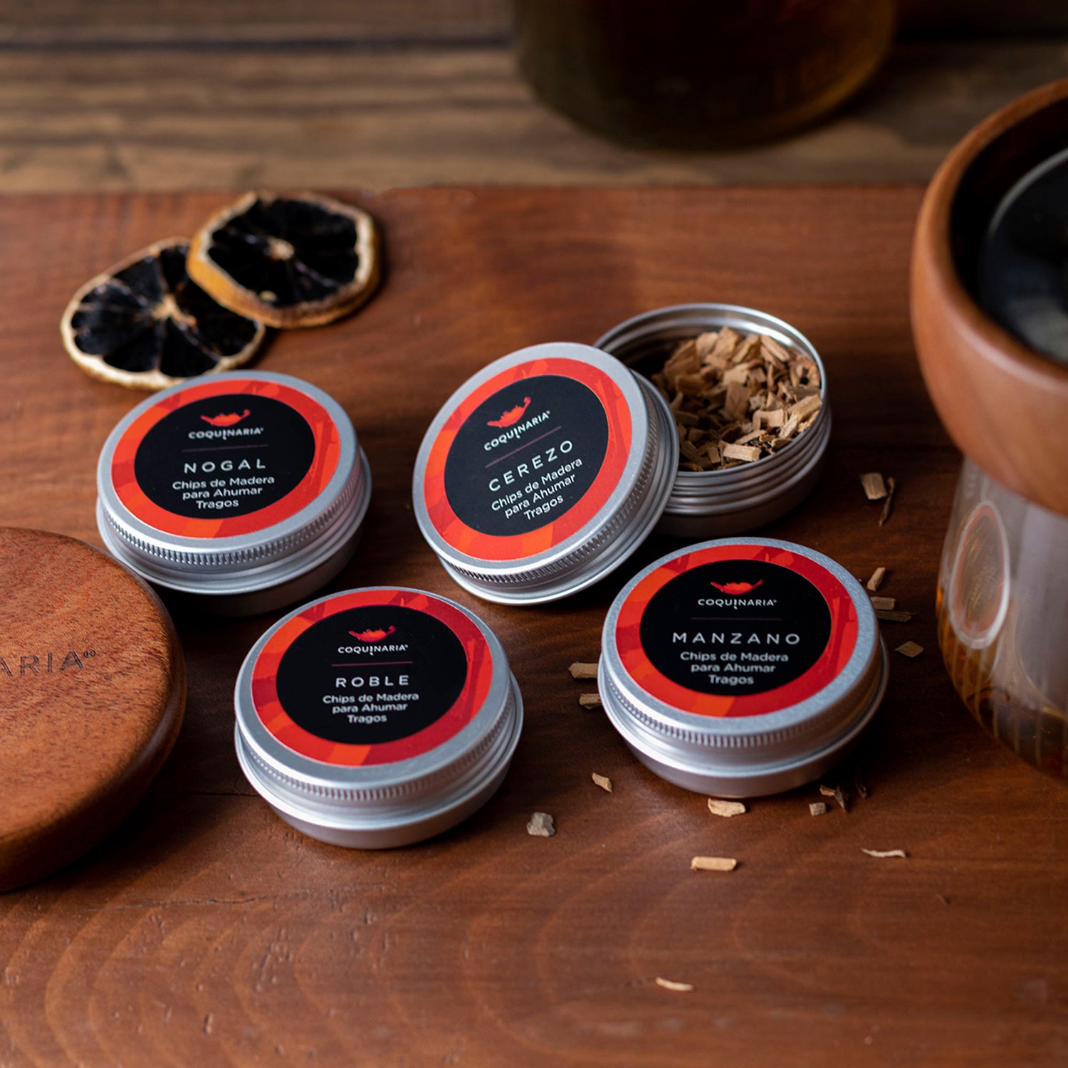 Con este kit, convertirás tu barra casera en un bar de autor en segundos. Infunde tus whiskies, bourbons, Manhattans, Old Fashioneds y cualquier cóctel que imagines con un toque distintivo y un perfil aromático inolvidable.