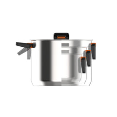 El acero inoxidable de alta calidad y el doble fondo Impact Bounding aseguran una distribución uniforme del calor, es un material duradero y resistente a la corrosión, lo que se traduce en resultados culinarios perfectos en cada ocasión. Gracias a las asas y manijas abatibles de plástico ultra resistente, el Set de Ollas Lyon Simple Cook ofrece una solución de almacenamiento compacta y conveniente. Prepárate para experimentar la verdadera versatilidad en tu cocina con este conjunto excepcional.