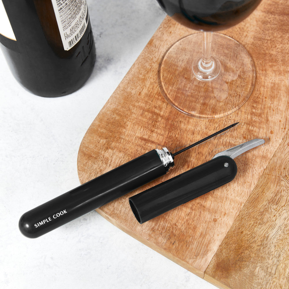 ¡Descubre la forma más fácil de abrir una botella de vino con nuestro nuevo descorchador de vino Simple Cook! Gracias a su bomba de aire a presión y aguja de gas, podrás introducir aire en la botella, empujando el corcho lentamente hasta que salga sin esfuerzo. ¡Disfruta de tus vinos favoritos sin complicaciones con Simple Cook!