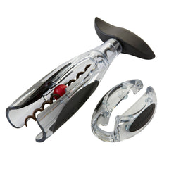 Descubre el elegante Set Descorchador y Cortacápsulas Cristal de Le Creuset, un dúo moderno para descorchar vinos con estilo. Este set de regalo incluye un cortacápsulas y un descorchador, ambos simples de usar y altamente duraderos. Gracias a su diseño, el descorchador extrae el corcho sin dañarlo, expulsándolo fácilmente con la tecnología \"Active Ball\". Es el regalo ideal para impresionar a los amantes del buen vino. Añade un toque de sofisticación a tus momentos de degustación con este set de Le Creuset.