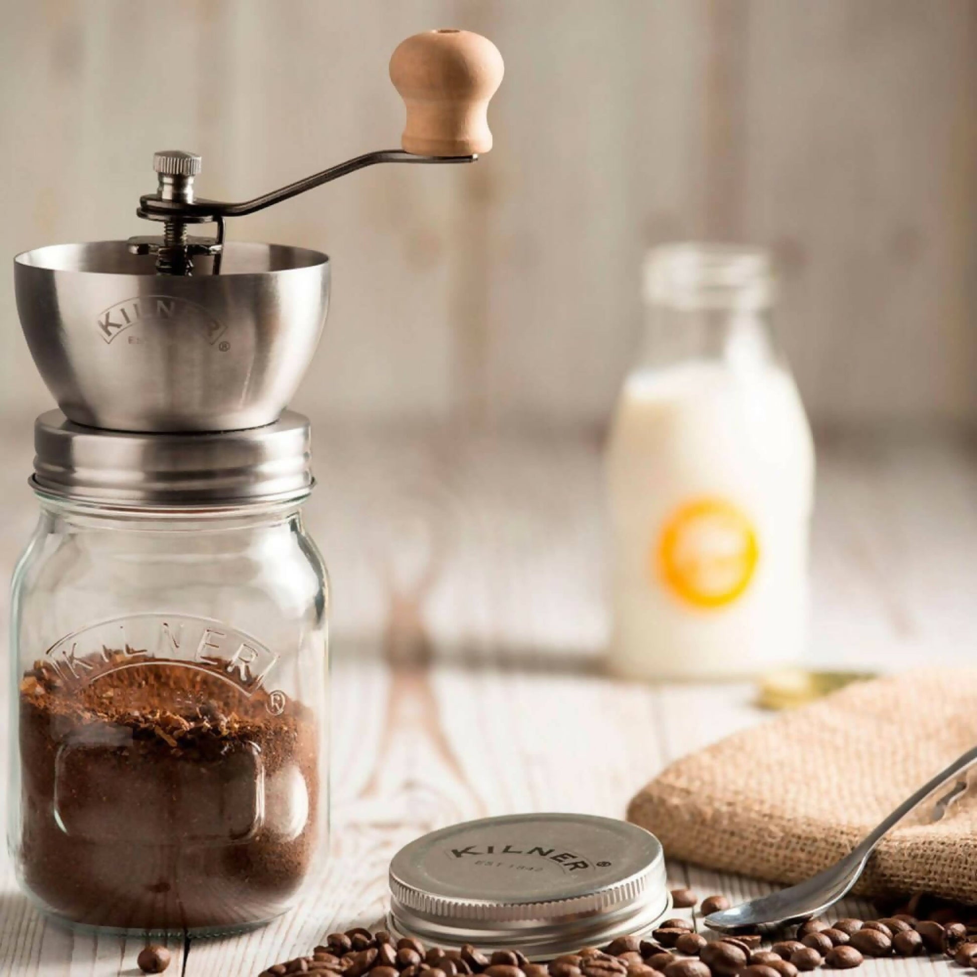 ¿Fanático del café recién molido? Este increíble Molinillo Manual para Café Kilner de acero inoxidable se adapta perfectamente al frasco de vidrio para un resultado espectacular. Sólo muele los granos y luego guarda el café para mantener todo su sabor hasta que llegue a tu taza.
