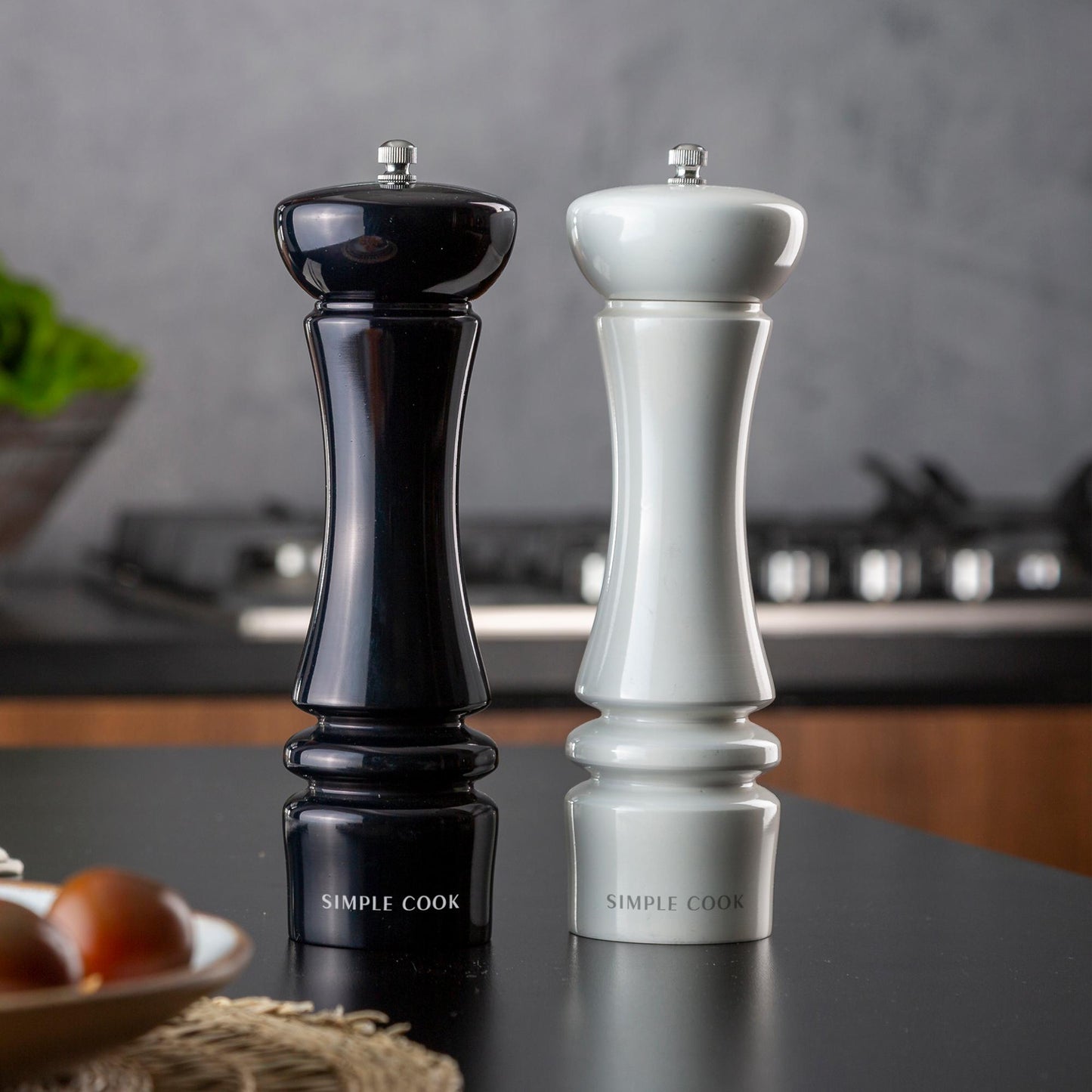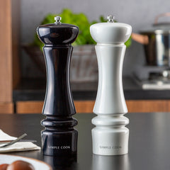 Añade estilo y funcionalidad a tu mesa con el Set Salero y Pimentero de Madera Simple Cook. Estos elementos están elaborados con madera de caucho de alta calidad, pintada en negro y blanco para un diseño moderno y elegante. Perfecto para uso diario o eventos especiales, este set agrega un toque de distinción a tus comidas y realza la presentación en tu mesa.