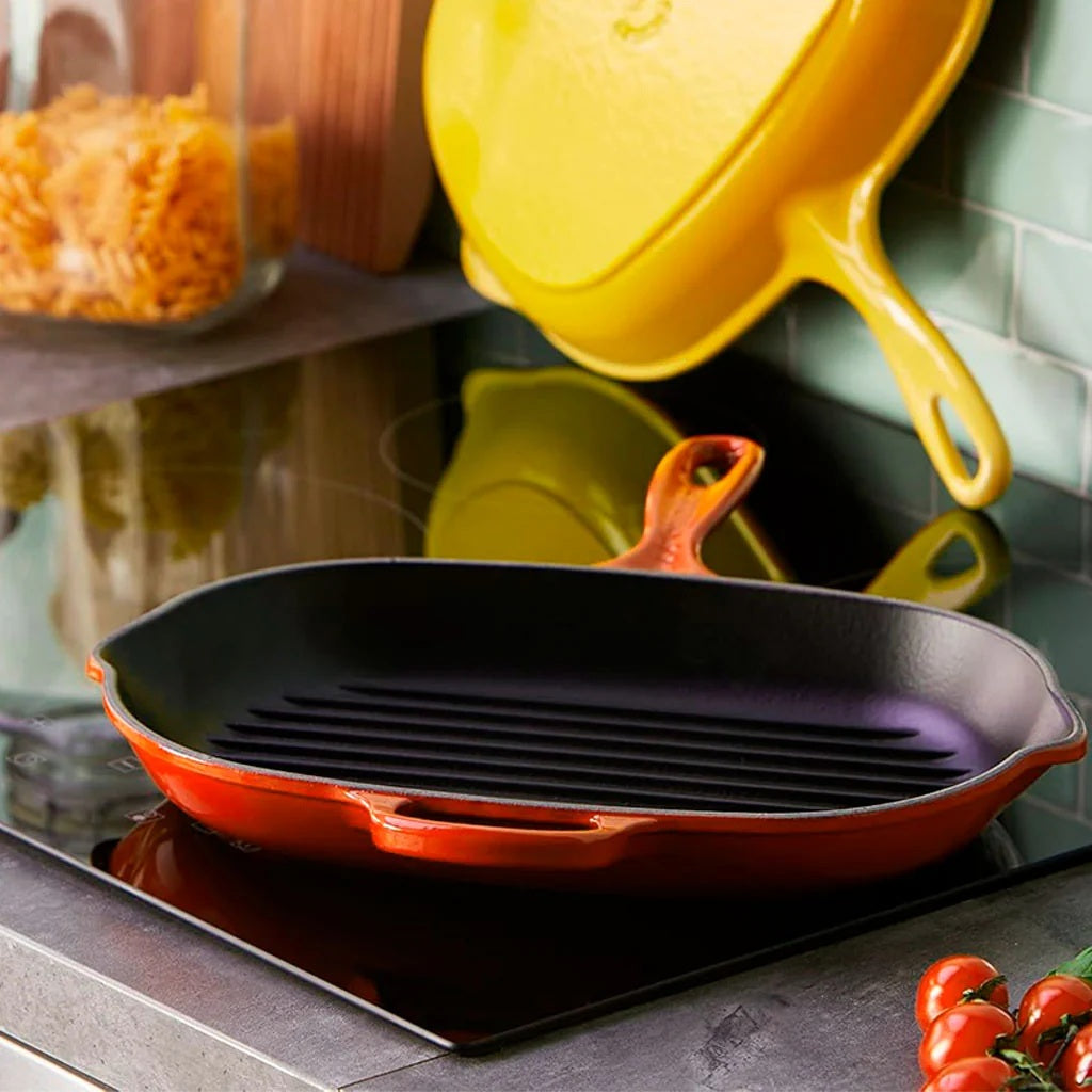 Prepara deliciosas parrilladas para toda la familia con la Skillet Grill Ovalada Volcánico de 32 cm de Le Creuset. Su amplia superficie extragrande permite sellar generosas cantidades de carne, pescado y verduras, ofreciendo sabores intensos y deliciosos. Fabricada en hierro fundido, esta parrilla es perfecta para usar en la cocina o en el horno, asegurando resultados excepcionales en cada comida. Disfruta de momentos inolvidables al aire libre o en casa con esta pieza clásica de Le Creuset.