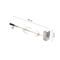 Un asadito para alegrar el día! El Spiedo Bosca a motor es uno de nuestros accesorios para parrilla más destacado, este te permite asar alimentos haciéndolos girar encima de las brasas, logrando una cocción uniforme y que los alimentos se doren sin la necesidad de dar vueltas a las porciones, ya que cuenta con un motor que le hace girar automáticamente.