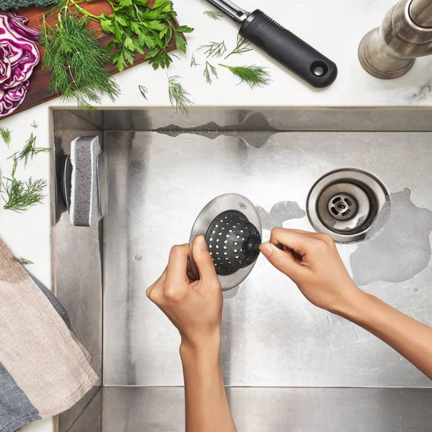 Mantén tu lavaplatos limpio y sin obstrucciones con el Filtro Tapón Oxo. Este práctico accesorio está diseñado para atrapar los restos de comida y evitar que obstruyan el desagüe, manteniendo tu fregadero funcionando sin problemas. Fabricado con silicona flexible y acero inoxidable resistente al agua, es fácil de limpiar y mantener en condiciones óptimas de higiene. Con el Filtro Tapón Oxo, disfruta de la tranquilidad de un lavaplatos limpio y eficiente en todo momento.