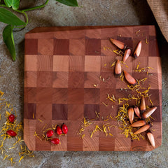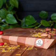 La tabla de corte profesional D, es una tabla de fibras orientadas End Grain hecha con madera de roble del sur de Chile. Diseño exclusivo nuestro, en un solo bloque compacto rectangular, de superficie lisa para la preparación de alimentos y con cortes en diagonal por los costados, dando un aspecto de rotación de la figura geométrica. Esta tabla de corte está hecha a mano en la región de La Araucanía a partir de despuntes de madera generados en el proceso de aserrío, lo que ayuda aun uso eficiente del recurso y así mantener y desarrollar los bosques. Las propiedades de auto-curación o selfhealing de la cubierta orientada en sentido End Grain, ayudan a proteger sus cuchillos y a mantener las cuchillas afiladas por más tiempo. Debido a esta orientación especial de las fibras de la madera, unido al tratamiento especial a base de aceite cera, ayuda a evitar la contaminación y las bacterias, permitiéndote cocinar de forma más segura, limpia y sin plástico