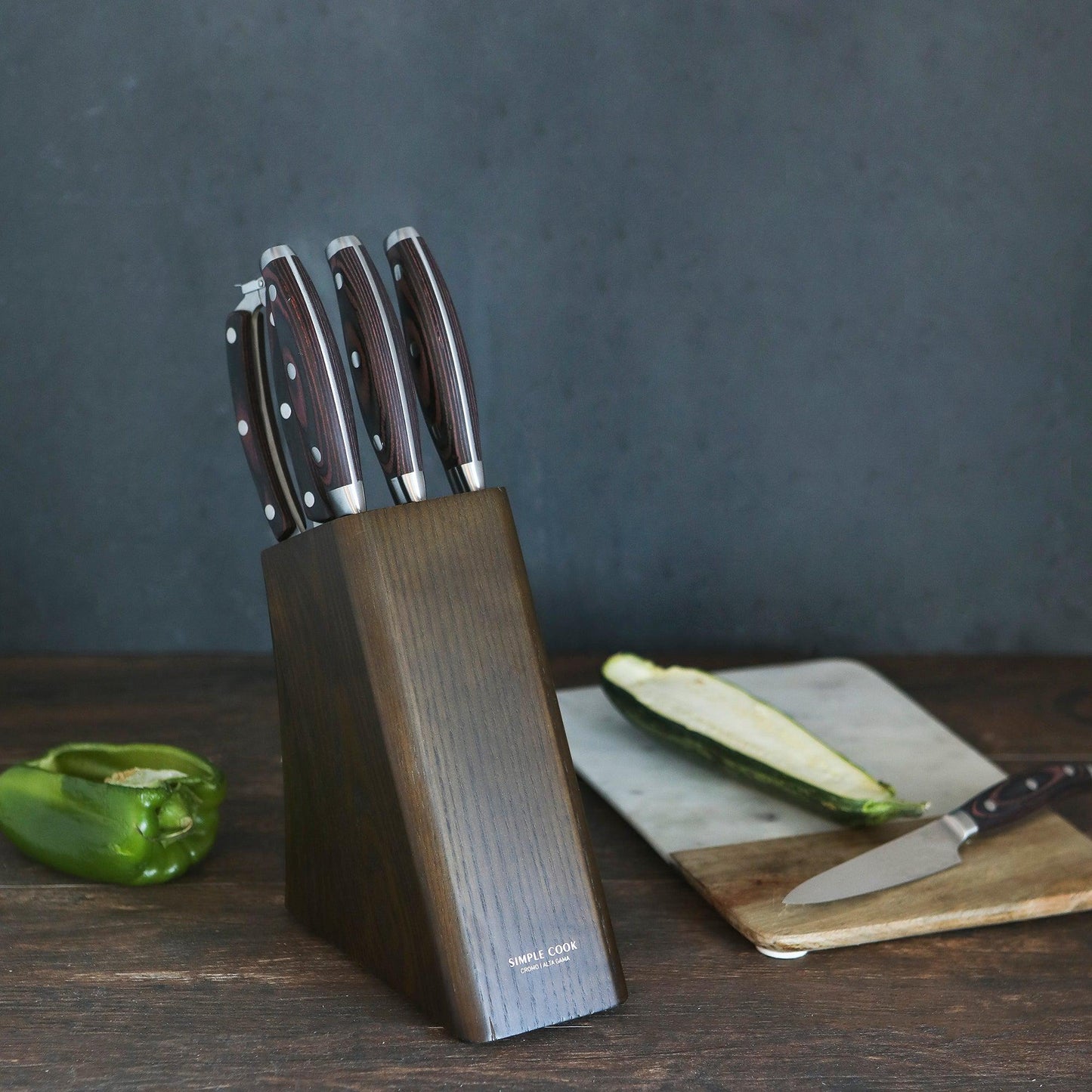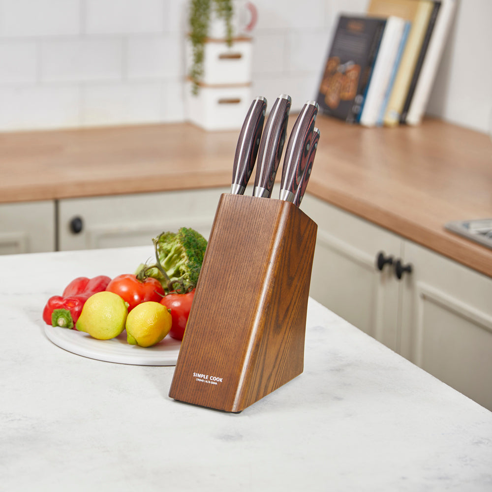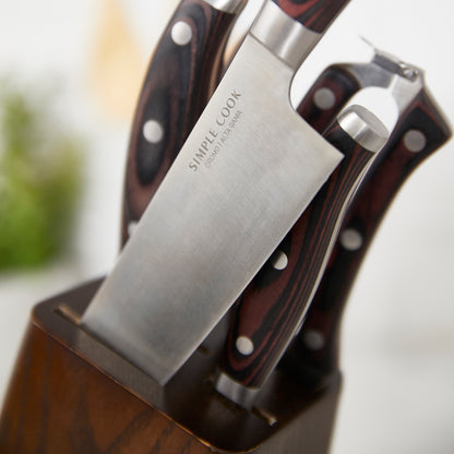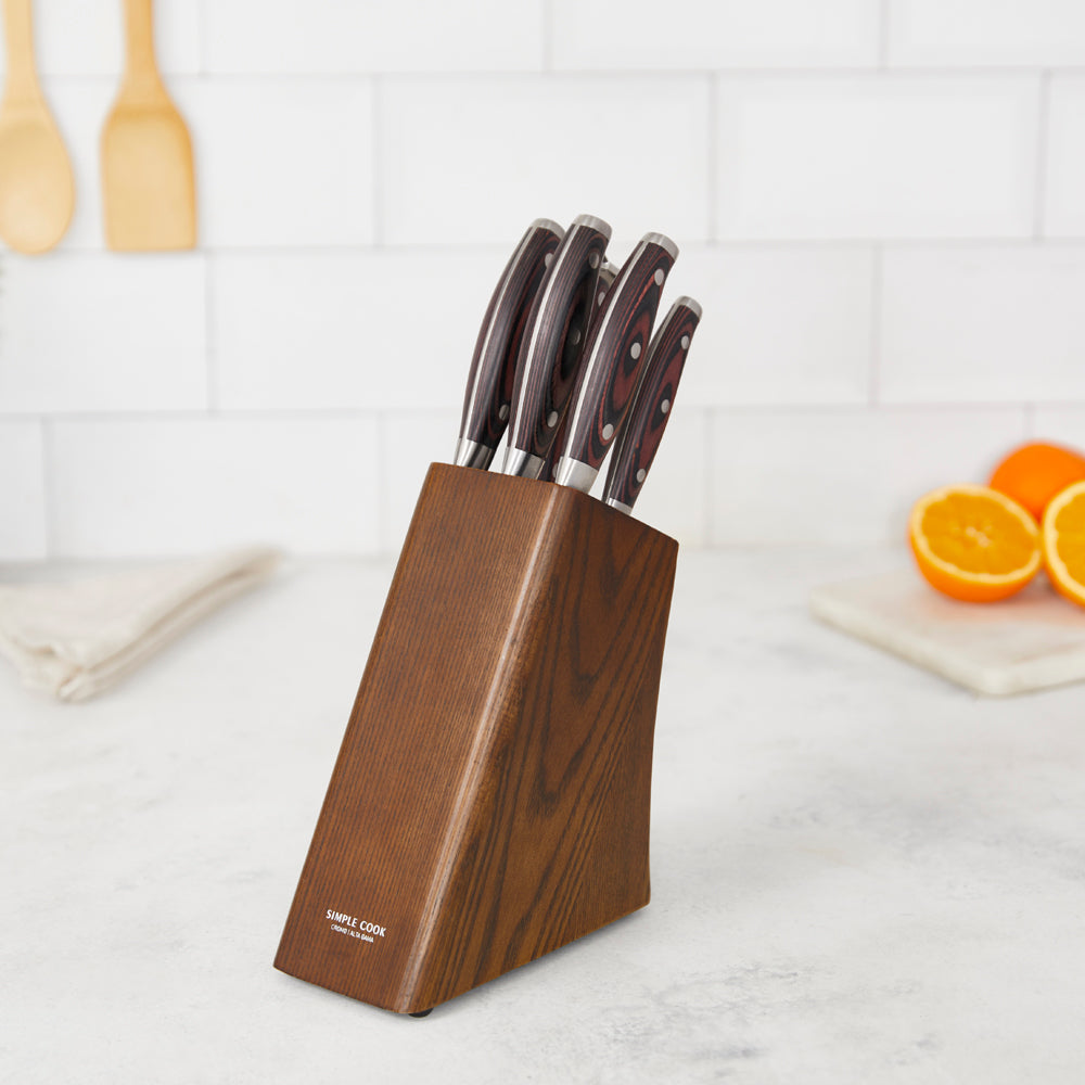 • Características Especiales Recubrimiento antiadherente, Cuchillo Chef 8", Cuchillo para rebanar 7", Cuchillo de pan 8", Cuchillo pelador 4,5", Tijeras