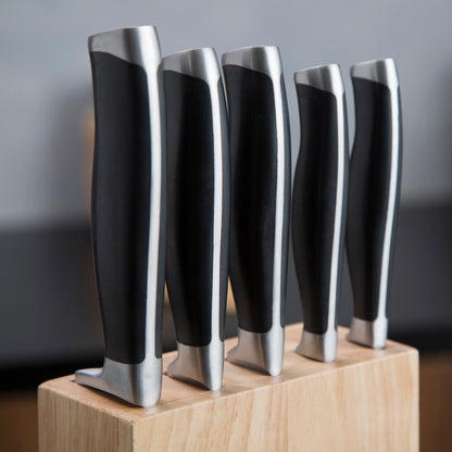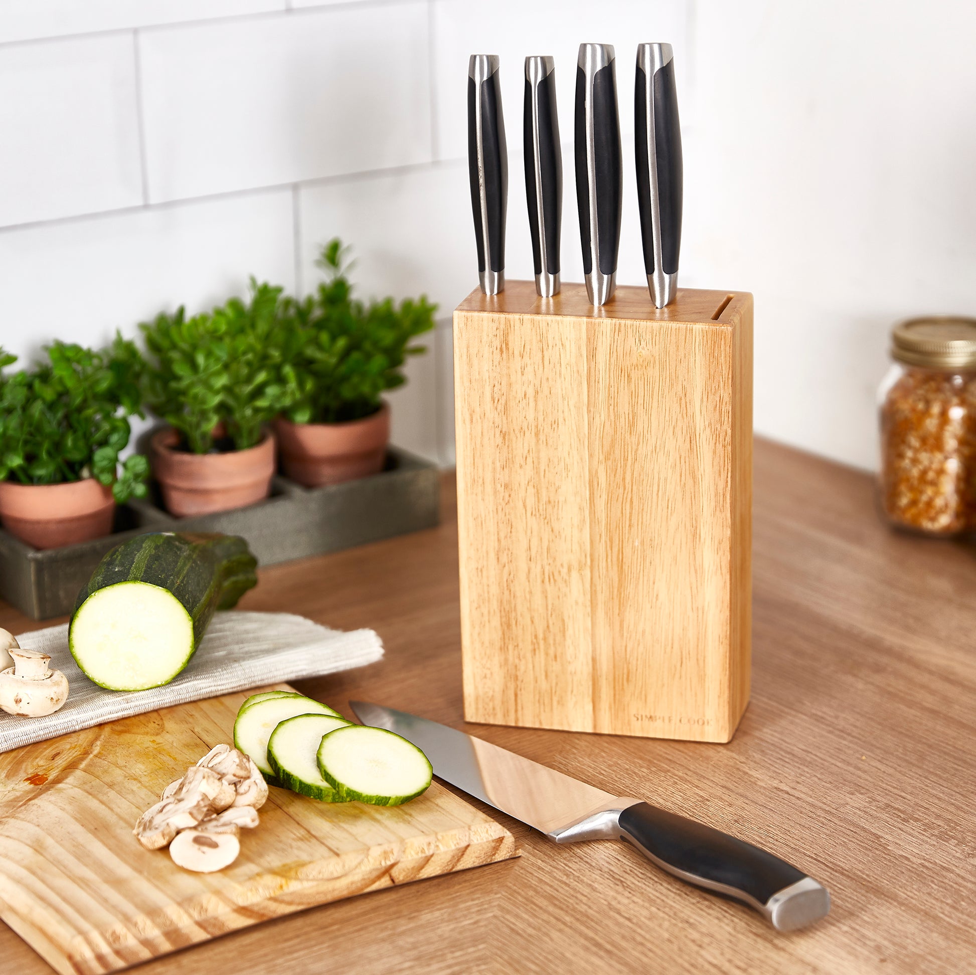 Equipa tu cocina con el Taco Cuchillos Boston 6 Pzs Simple Cook, un set funcional y elegante que incluye 5 cuchillos esenciales y un práctico taco de madera. Diseñados para ofrecer precisión y comodidad, cuentan con mangos ergonómicos antideslizantes y hojas de acero inoxidable 3Cr13, resistentes al desgaste y fáciles de afilar.