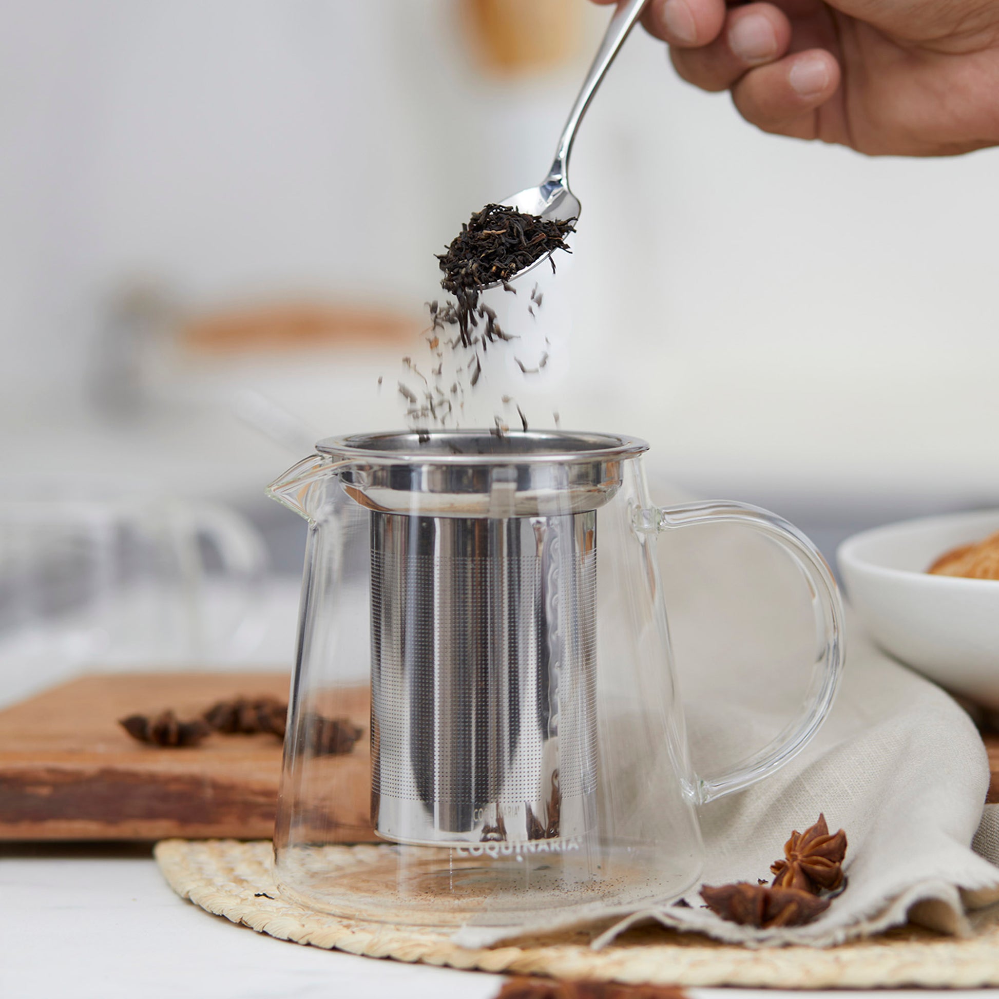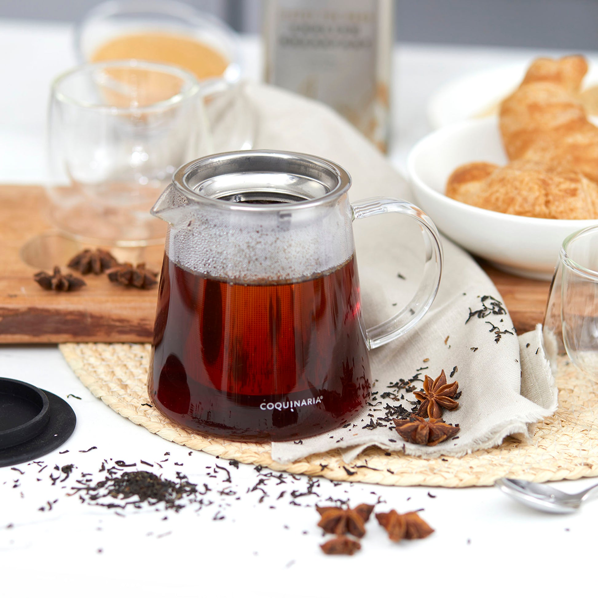 La Tetera de Vidrio 650ml Coquinaria es la combinación perfecta de elegancia y funcionalidad. Con su diseño sofisticado y cristalino, permite apreciar el color y la infusión de tus tés favoritos mientras se preparan. Ideal para disfrutar momentos de calma y relajación, su capacidad de 650ml la hace perfecta para compartir una exquisita taza de té en cualquier ocasión. Su estilo refinado convierte cada infusión en una experiencia sensorial, elevando el ritual del té a un nuevo nivel de placer y sofisticación.