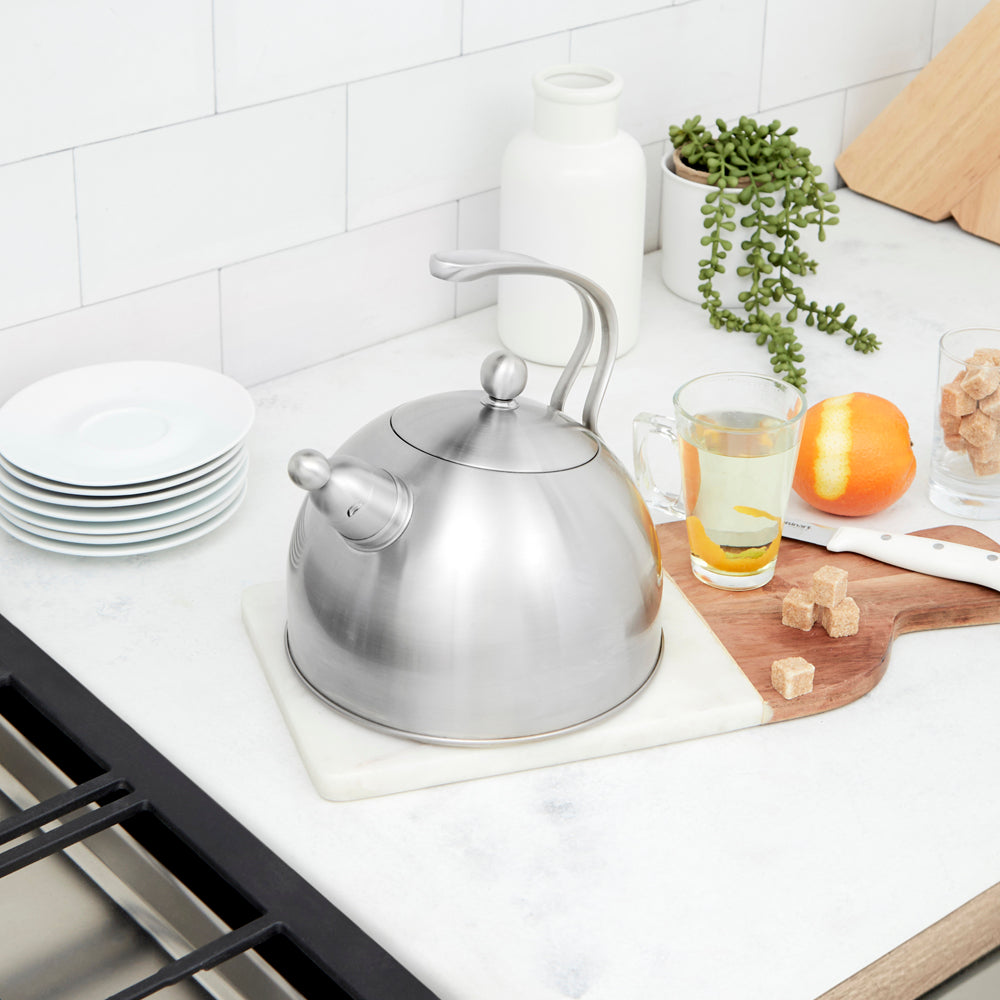 La tetera modelo Toulouse de Simple Cook no solo es una adición funcional a tu cocina, sino también una obra de arte en sí misma. Con capacidad para 2.5 litros, esta tetera combina un cuerpo y un silbato de acero inoxidable que no solo son duraderos, sino también visualmente impresionantes. Prepara tus infusiones favoritas con esta elegante tetera.