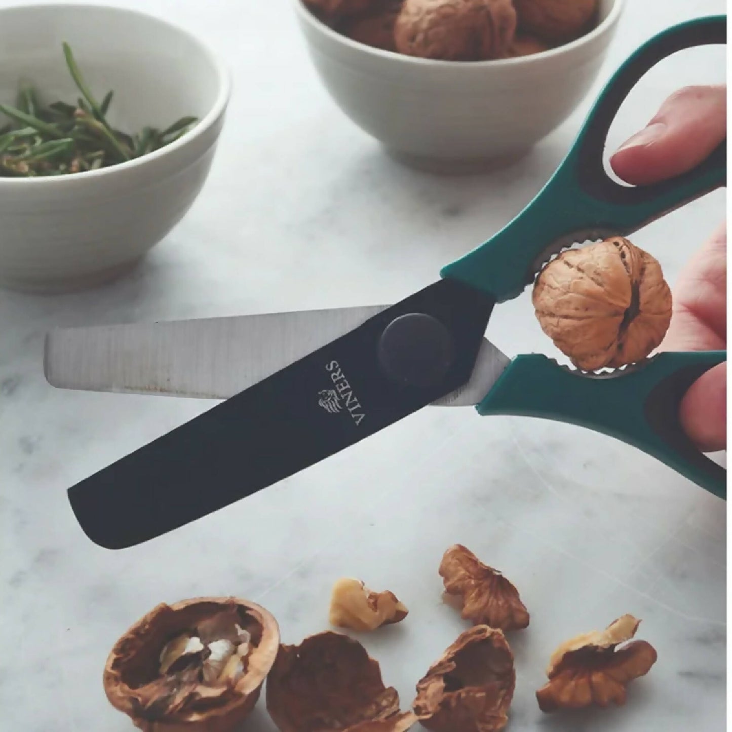 La tijera Viners Assure es una herramienta ideal para las tareas diarias de cocina. La punta cuadrada única de la colección Assure ha sido diseñada para maximizar la seguridad dentro de la casa. La Tijera cuenta con asas de tacto suave para una comodidad y un agarre óptimos. Las hojas están acabadas con un revestimiento antiadherente negro que ayuda a reducir la fricción de corte. En el mango la sección ovalada es utilizada para abrir herméticamente tapas de botellas y para abrir nueces. Viners es conocida por su calidad que se remonta a más de 110 años, asegurando su lugar como la marca de cubiertos número 1 del Reino Unido.