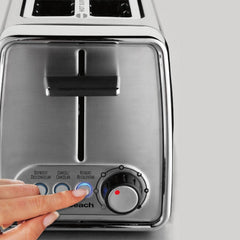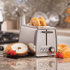 El tostador Hamilton Beach está construido en un cuerpo de acero Inoxidable para mayor durabilidad y con 2 ranuras extra anchas aptas para rebanadas y tipos de panes más gruesos, logrando resultados óptimos en cualquiera gracias a sus 7 niveles de intensidad, su sistema Toast Boost y funciones de descongelar, recalentar y cancelar.
