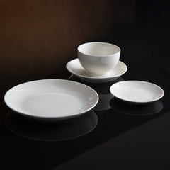 Este simple y elegante juego de Porcelana, es para el uso diario, como para combinar con otras vajillas decoradas. Para gustos sencillos y sofisticados, el blanco siempre va bien. Juego para 6 personas:6 platos Comida, 6 platos ensalada o postre, 6 platos pan y 6 bowl sopa o cereal. Hecho en Indonesia.